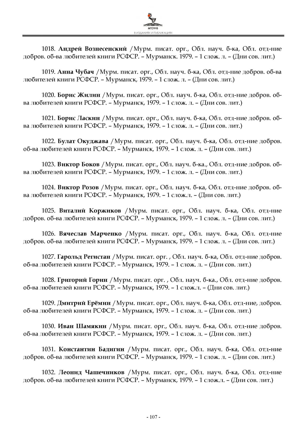 /М у р м . п и са т . ор г . , О бл . н ауч . б -к а , О бл . о т д -н и е д о б р о в .