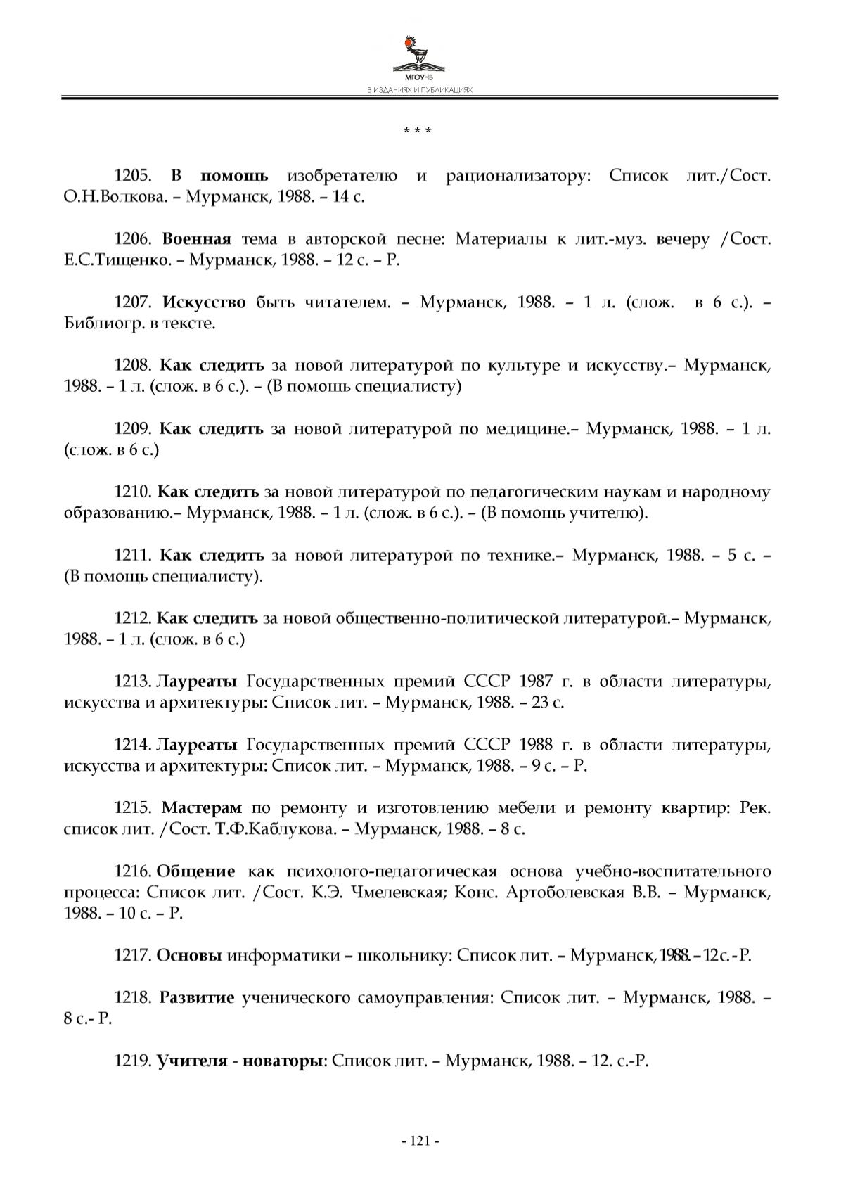 1 2 1 9 . У ч и т е л я - н о в а т о р ы : С п и со к ли т . - М урм ан ск , 1 9 8 8 . - 12 . с .-Р .