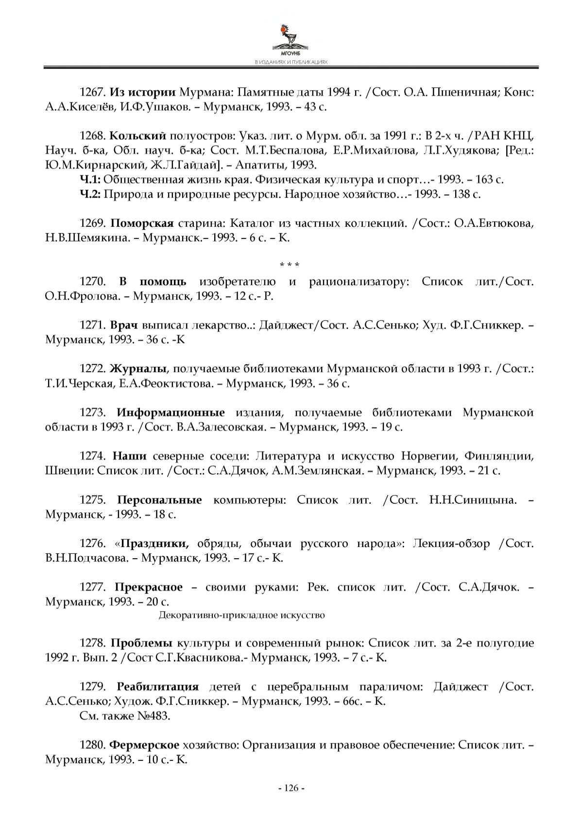 п о л у о стр о в : Указ. ли т . о М урм . обл . за 1 9 9 1 г.: В 2 - х ч . / Р А Н КН Ц ,