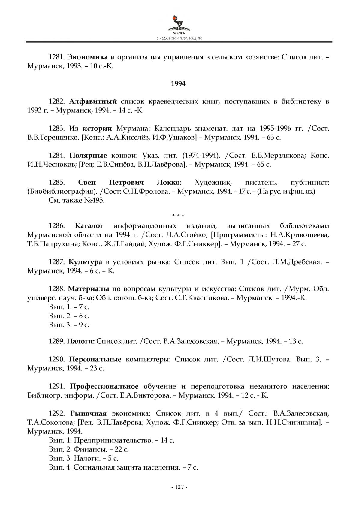 1 9 9 3 г. - М урм ан ск , 1 9 9 4 . - 1 4 с. -К .