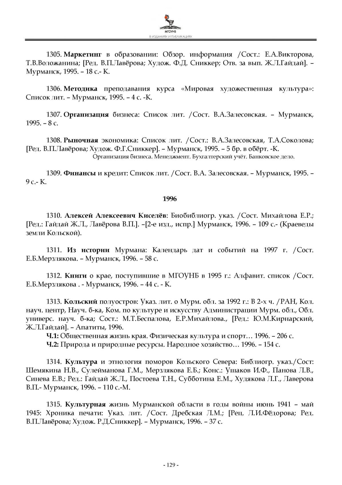 С п и со к лит . - М у рм ан ск , 1 9 9 5 . - 4 с. -К .