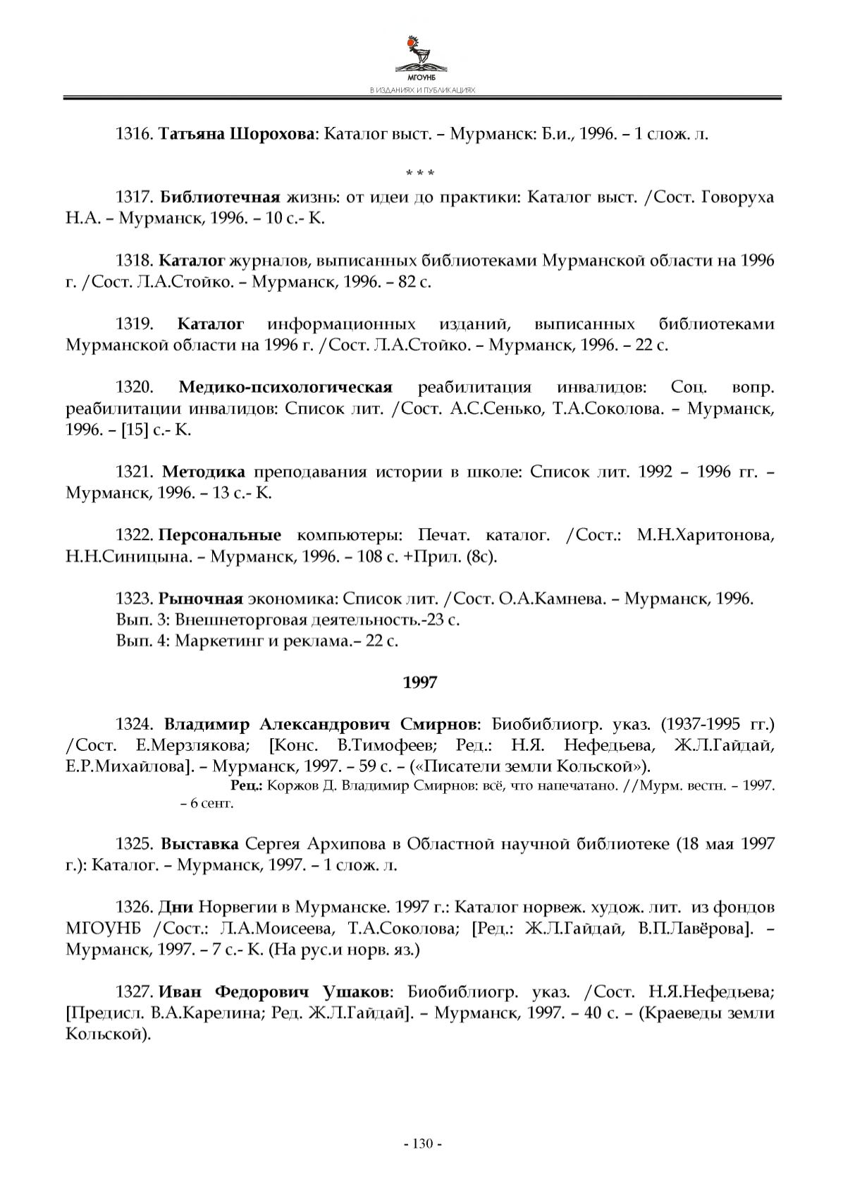 г. /Сост. Л.А.Стойко. - Мурманск, 1996. - 82 с.