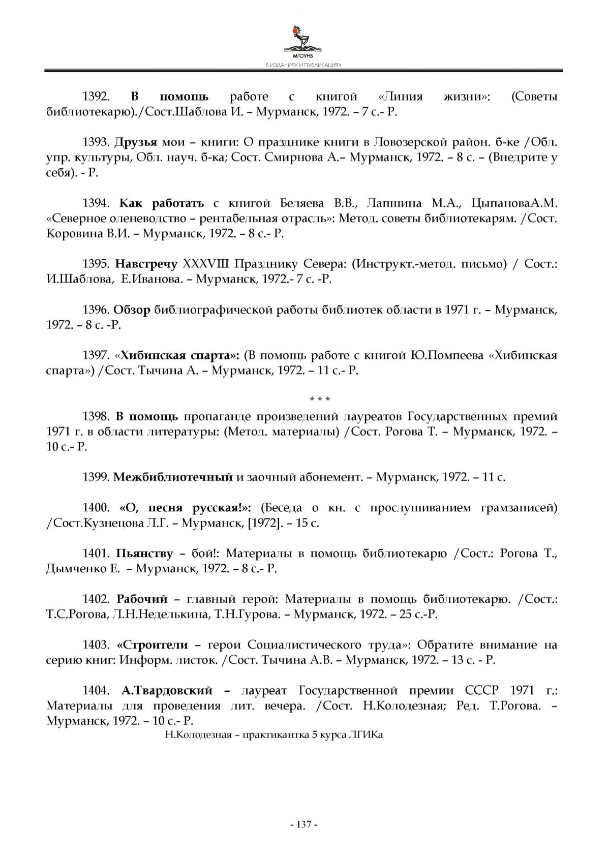 1 9 7 1 г. в о б л а сти ли т ер а туры : (М ето д . м а т ери алы ) / С о с т . Р о го в а Т. - М урм ан ск , 1 9 7 2 . -