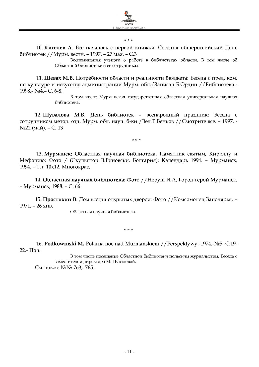 библиотек //Мурм. вестн. - 1997. - 27 мая. - С.3