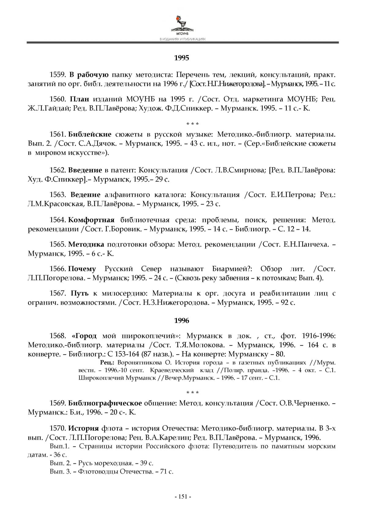 вып. /С о с т . Л .П .П о г о р ел о в а ; Рец . В .А .К ар ел и н ; Ред . В .П .Л а в ёр о в а . - М у рм ан ск , 1 9 9 6 .