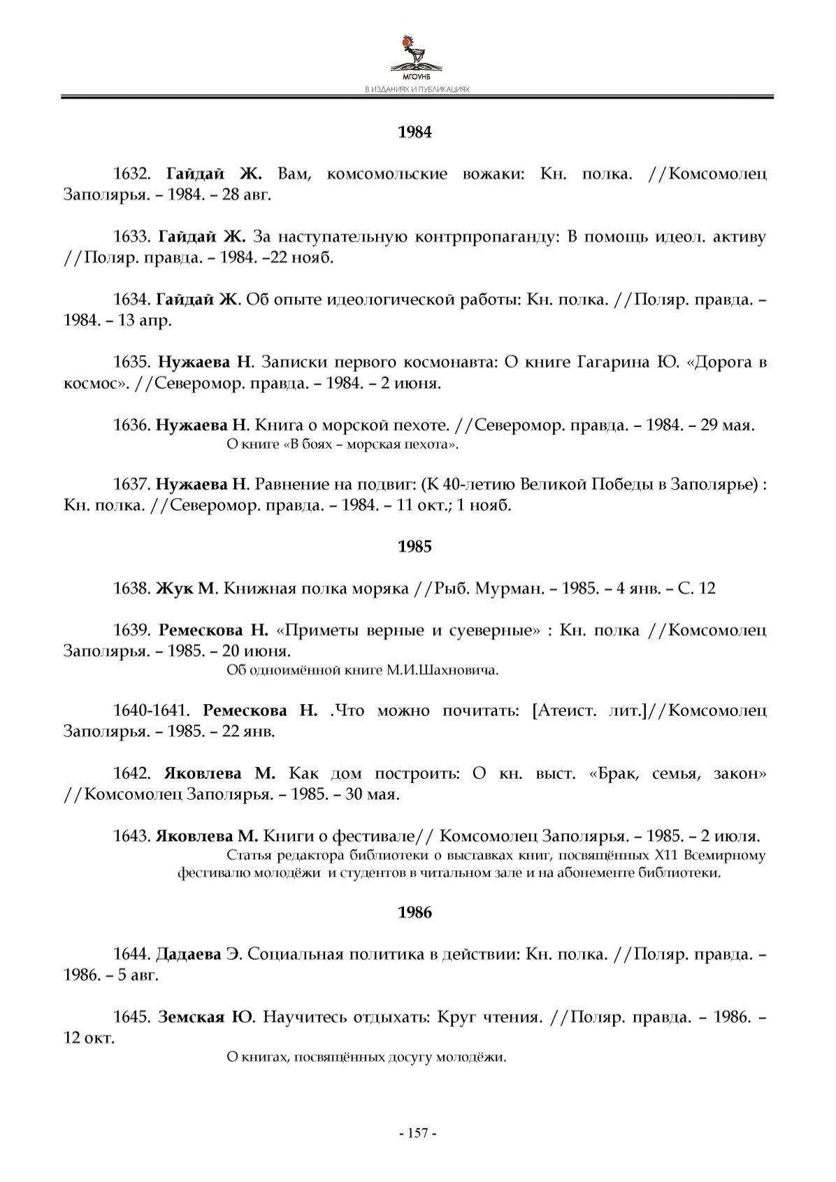1634. Гайдай Ж. Об опыте идеологической работы: Кн. полка. //Поляр. правда. -