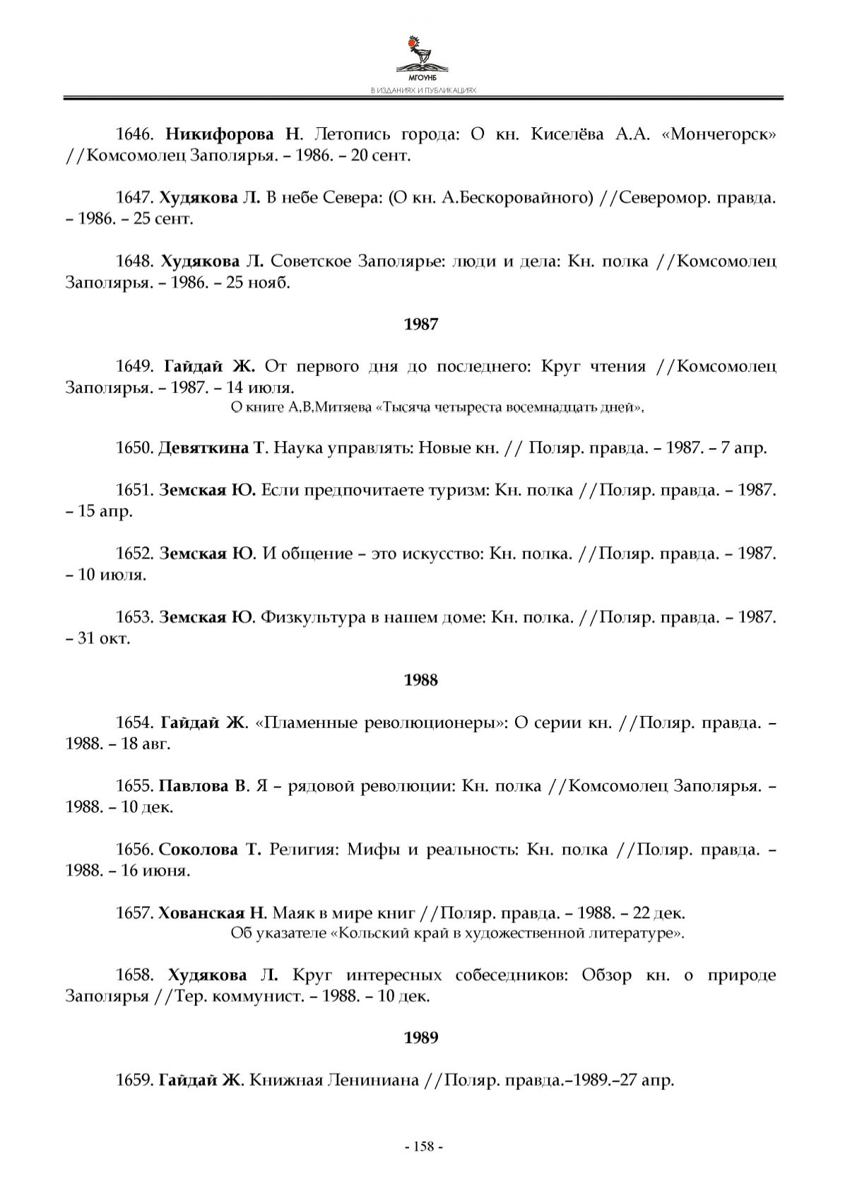 1 6 5 7 . Х о в а н с к а я Н . М аяк в м и р е кни г / /П о л я р . п р авд а . - 1 9 8 8 . - 2 2 дек .