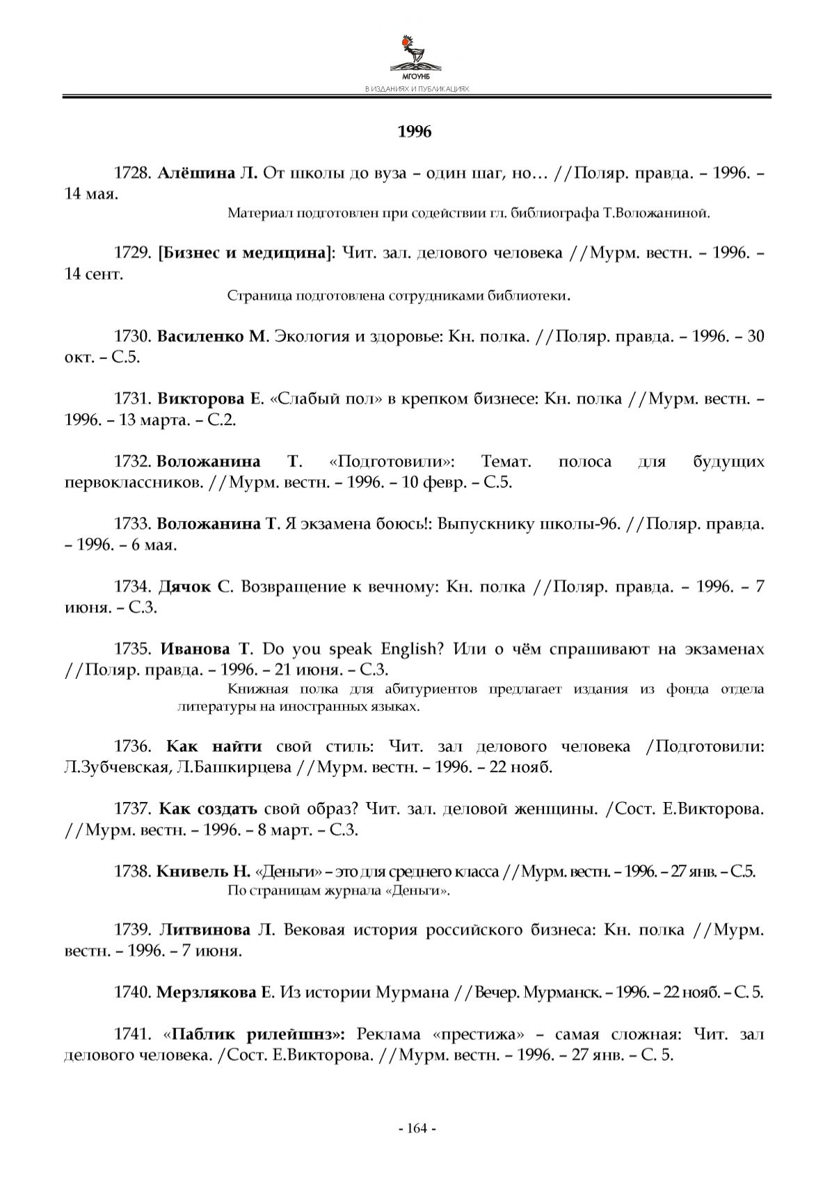 1 7 2 9 . [Б и з н е с и м е д и ц и н а ] : Чит. зал . д ел о в о го ч елов ек а / /М у р м . в естн . - 1 9 9 6 . -