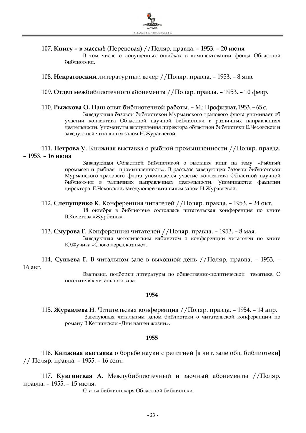 113. Смурова Г. Конференция читателей //Поляр. правда. - 1953. - 8 мая.