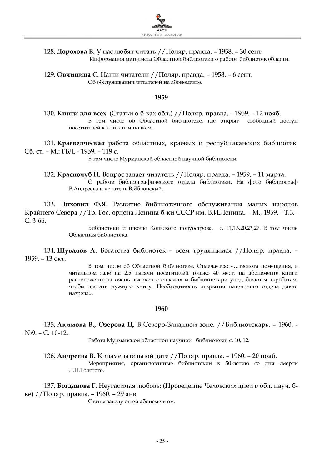 129. Овчинина С. Наши читатели //Поляр. правда. - 1958. - 6 сент.