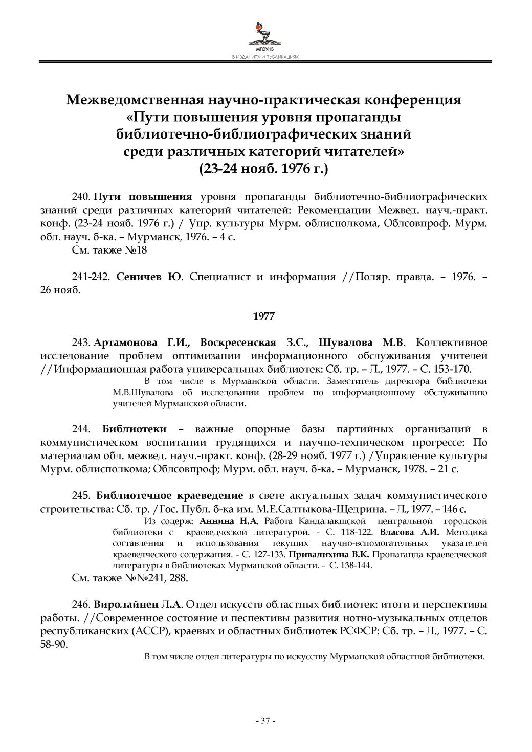 конф. (23-24 нояб. 1976 г.) / Упр. культуры Мурм. облисполкома, Облсовпроф. Мурм.