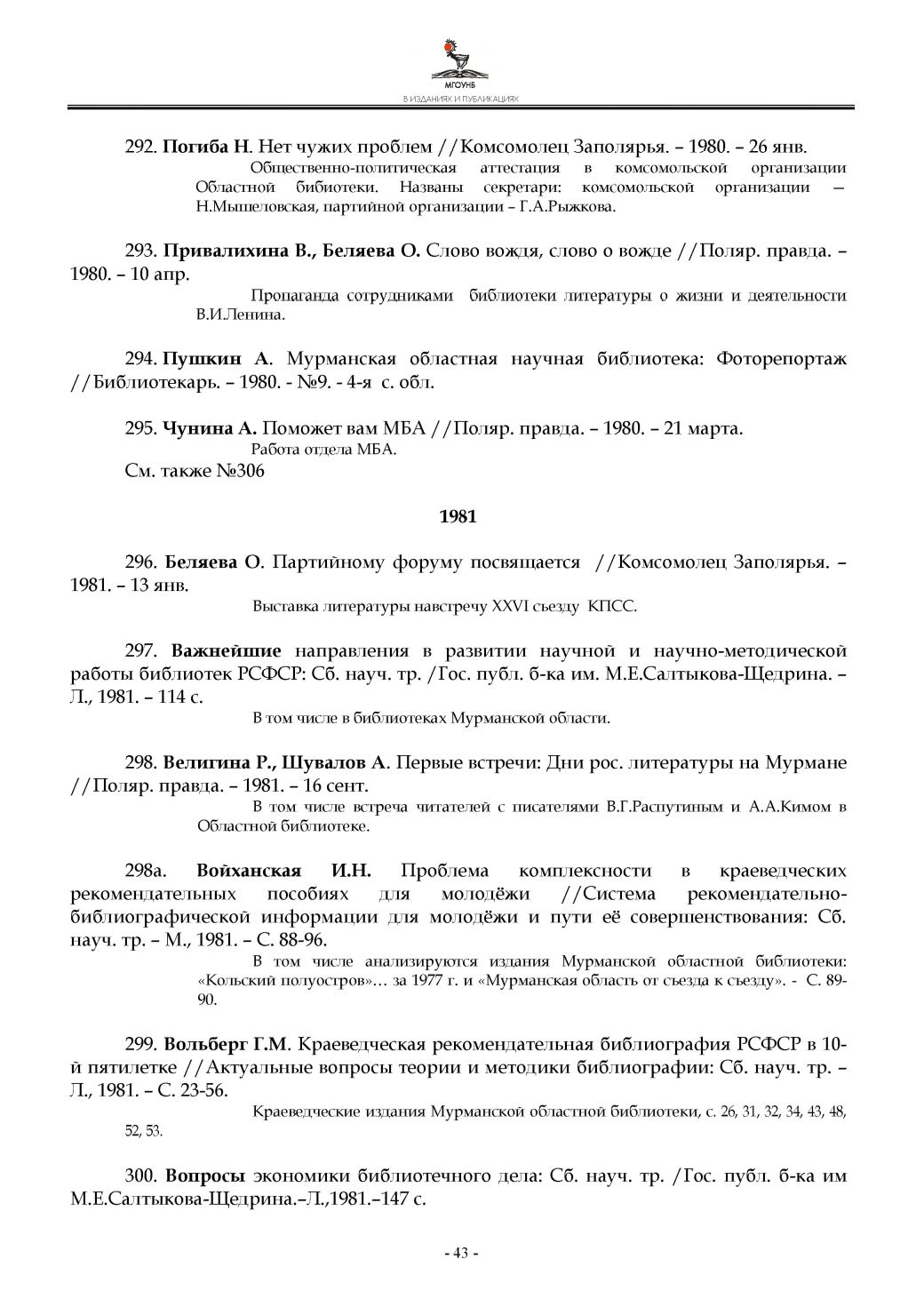 Краеведческие издания Мурманской областной библиотеки, с. 26, 31, 32, 34, 43, 48,