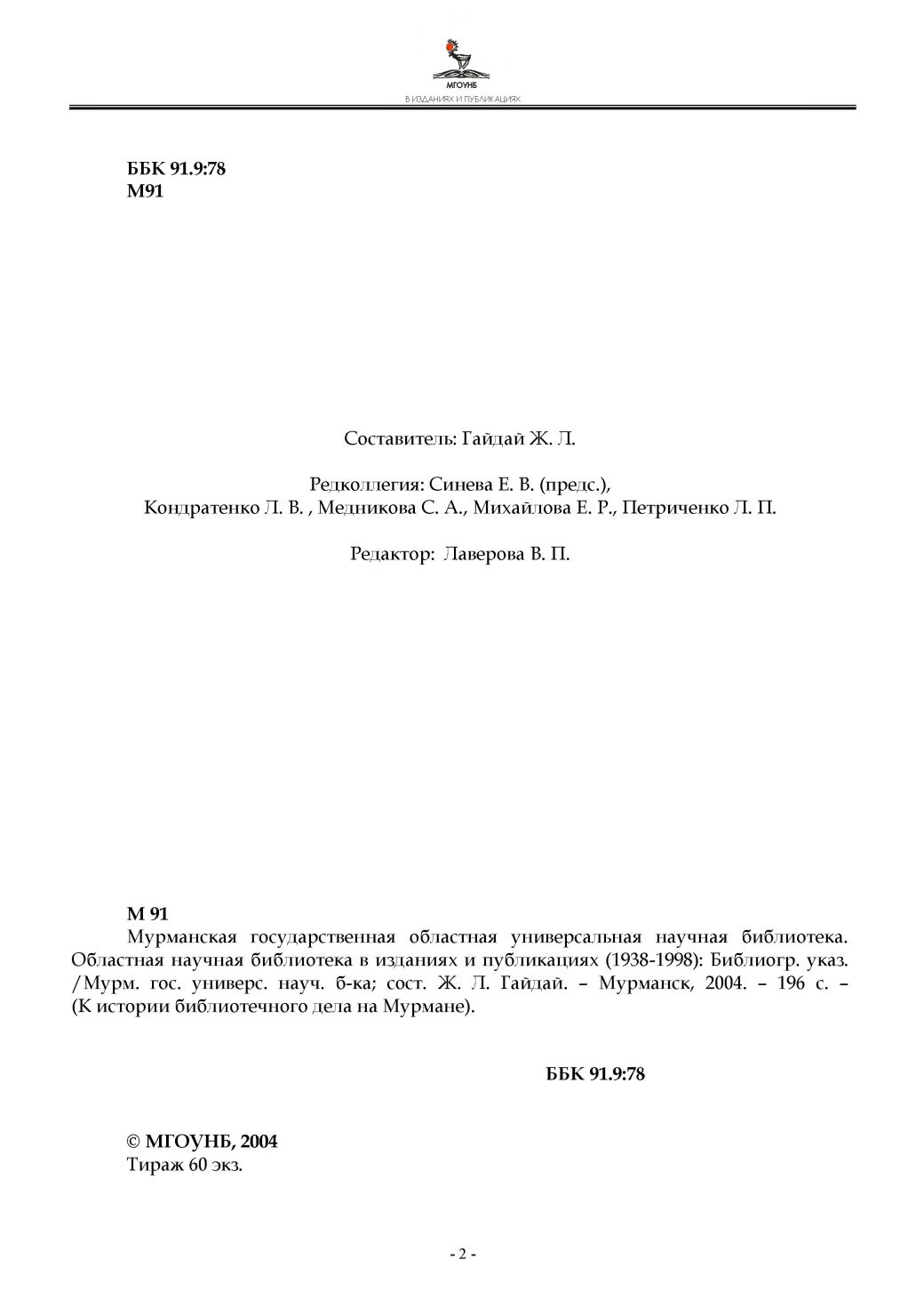 /Мурм. гос. универс. науч. б-ка; сост. Ж. Л. Гайдай. - Мурманск, 2004. - 196 с. -