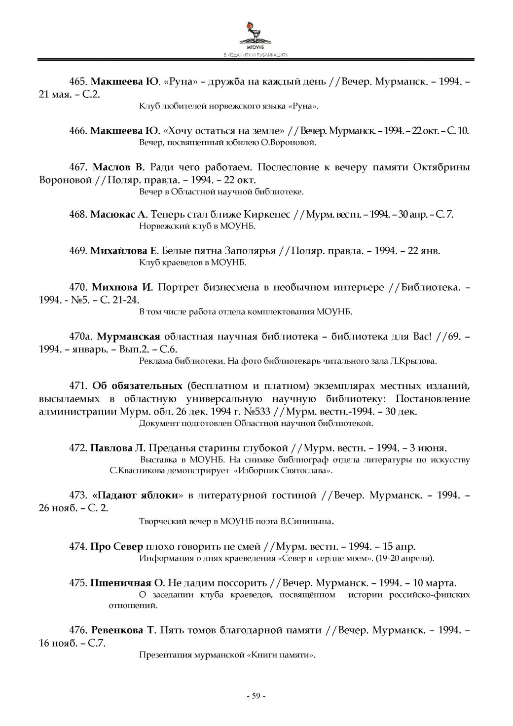 469. Михайлова Е. Белые пятна Заполярья //Поляр. правда. - 1994. - 22 янв.