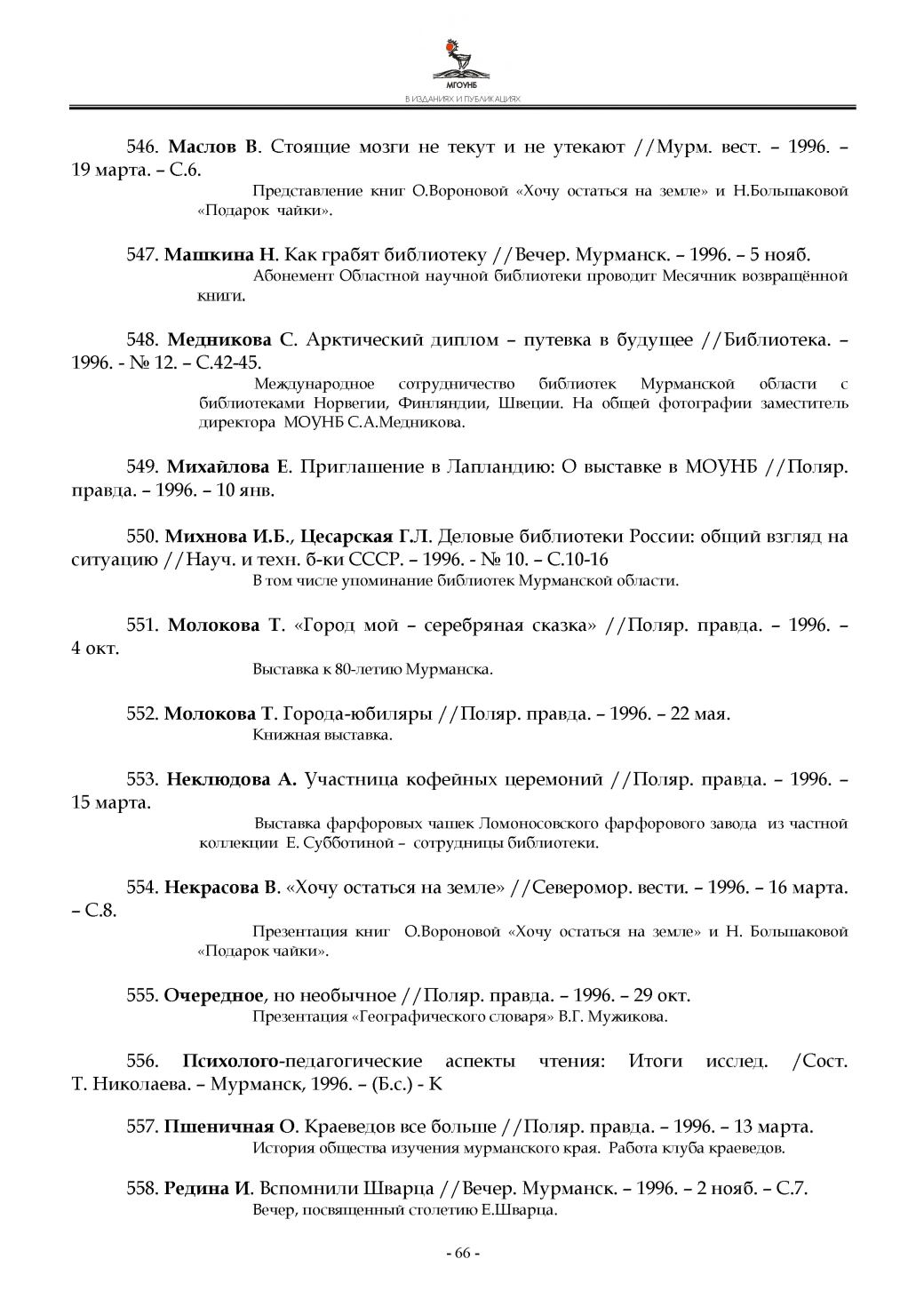 552. Молокова Т. Города-юбиляры //Поляр. правда. - 1996. - 22 мая.