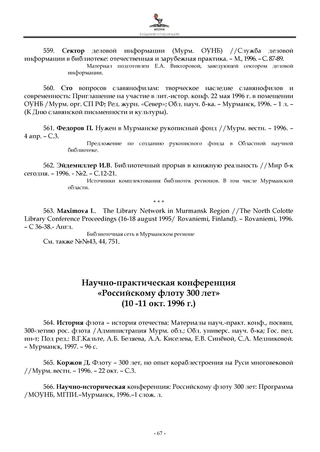 561. Федоров П. Нужен в Мурманске рукописный фонд //Мурм. вестн. - 1996. -