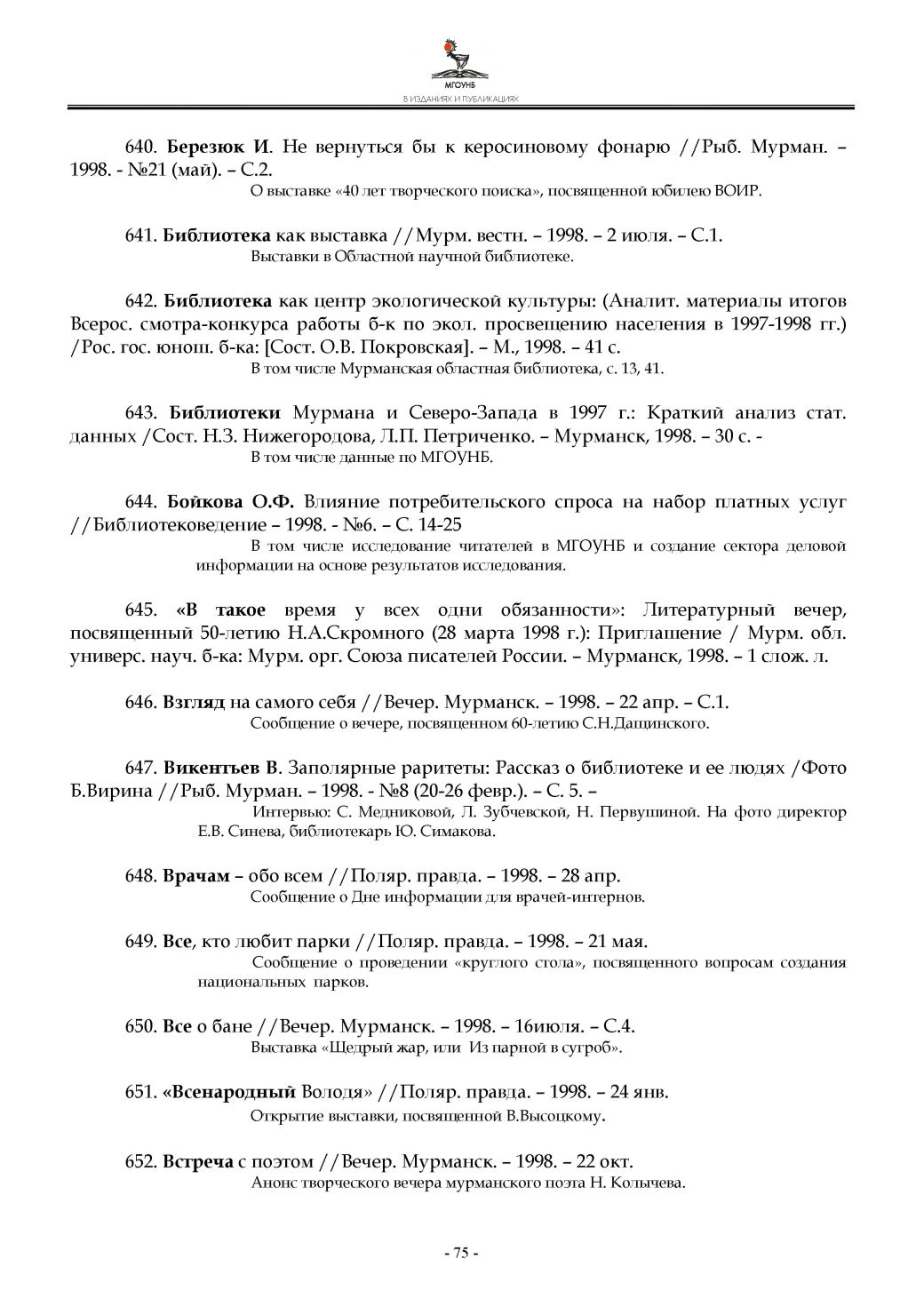 641. Библиотека как выставка //Мурм. вестн. - 1998. - 2 июля. - С.1.