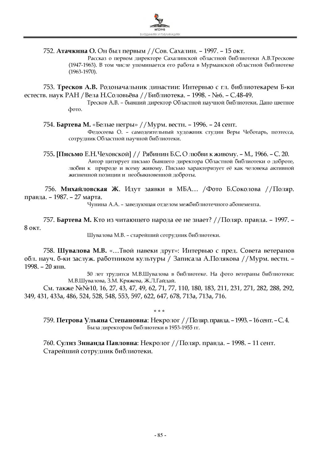 (1947-1963). В том числе упоминается его работа в Мурманской областной библиотеке