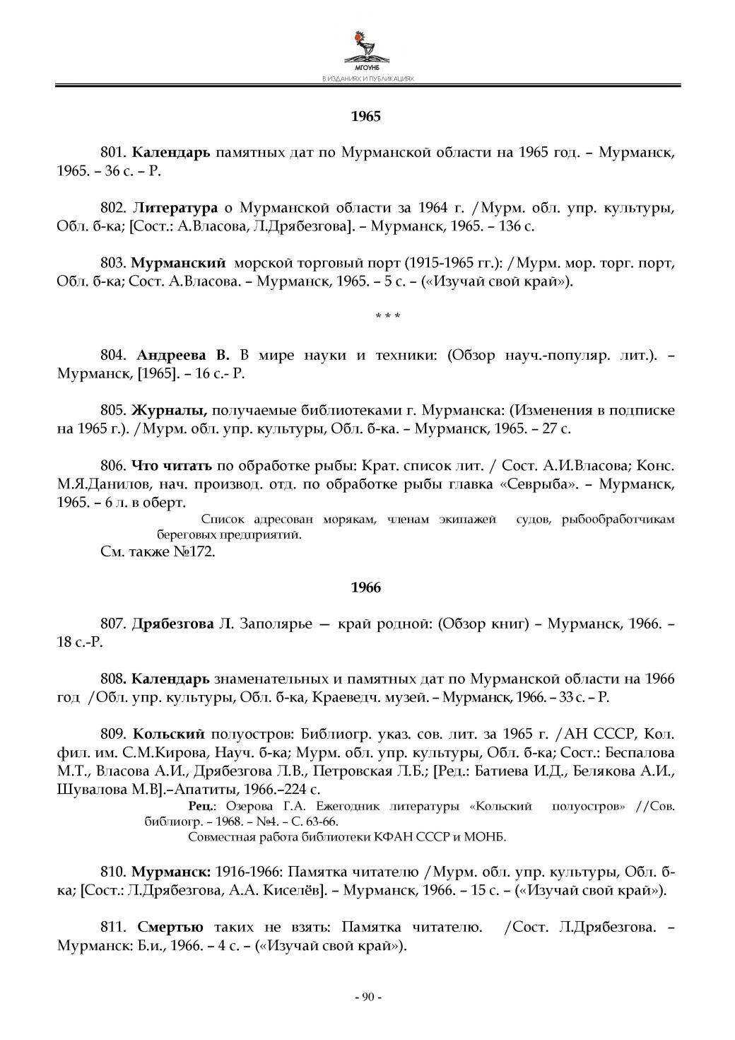 Рец.: Озерова Г.А. Ежегодник литературы «Кольский полуостров» //Сов.