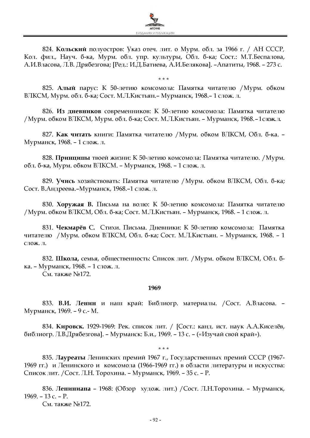 библиогр. Л.В.Дрябезгова]. - Мурманск: Б.и., 1969. - 13 с. - («Изучай свой край»).