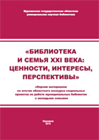 Библиотека и семья ХХI века: ценности, интересы, перспективы : сборник материалов по итогам областного конкурса социальных проектов по работе муниципальных библиотек с молодыми семьями / Мурм. гос. обл. универс. науч. б-ка ; [сост.: Грешникова А. И. ; редкол.: Медникова С. А. и др. ; ред. : Мудревская Е. Н.]. – Мурманск : МГОУНБ , 2015. – 108 с.