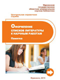 Оформление списка литературы к научным работам: памятка / Мурм. гос. обл. универс. науч. б-ка, Центр. справоч. служба; [сост. Зубчевская Л. Ф.; дизайн-макет Мудревская Е. Н.].- Мурманск: Мурманская государственная областная универсальная научная библиотека, 2015. – 10 с.