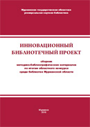 Инновационный библиотечный проект: сборник методико-библиографических материалов по итогам областного конкурса среди библиотек Мурманской области / Мурм. гос. обл. универс. науч. б-ка ; [сост.: Кройтор Т.В. ; редкол.: Медникова С. А., Гайдай В.А. ; ред. : Мудревская Е. Н.]. – Мурманск : МГОУНБ , 2016. – 85 с.