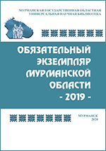 Обязательный экземпляр Мурманской области –2019 : библиографический указатель / Мурм. гос. обл. универс. науч. б-ка ; [сост. Фролова О. Н., Дячок С. А. ; редкол. : Вовк О. С. и др.]. – Мурманск, 2020. – 133 c.
