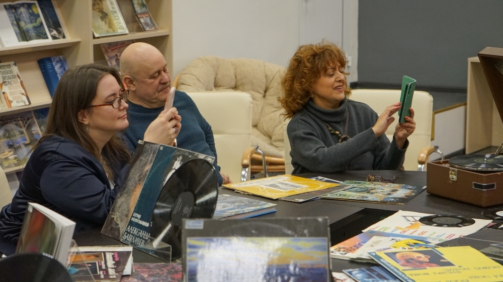 Участники посетили закрытый фонд отдела, где хранится свыше 16 тысяч пластинок, познакомились с различными видами и форматами дисков, в т. ч. гибкими, виниловыми и шеллачными, узнали секреты грампластинки, самостоятельно освоили работу старинного патефона и современного проигрывателя, прослушали редкие звукозаписи.