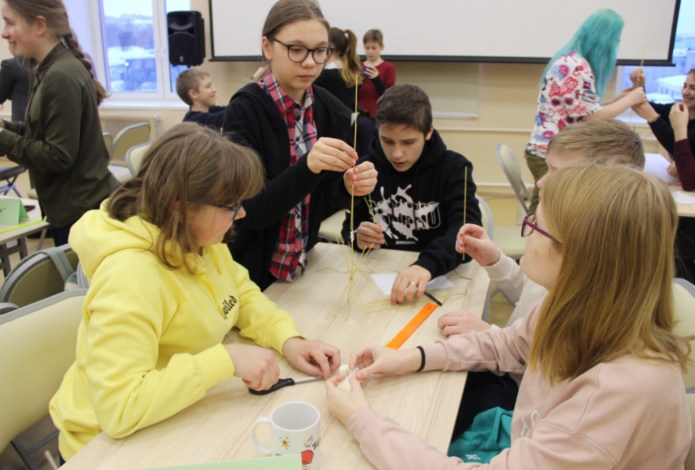 Школьники и студенты сразились в командной игре «Маршмеллоу челлендж». Организатор игры - Музей занимательных наук «Фокус».