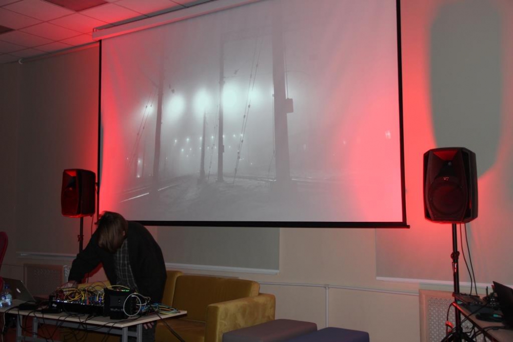 Саунд-артист и математик Сергей Костырко (Санкт-Петербург/Никель) представил звуковой перформанс «Переселенцы». В его основе лежат исследования миграционных процессов в Мурманской области за последние несколько лет, которые художник с помощью математики преобразовал в звуковые волны.