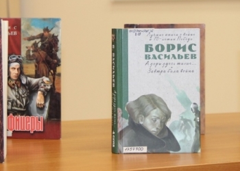 Во время лекции были представлены книги Бориса Васильева о войне из фонда Областной научной библиотеки.