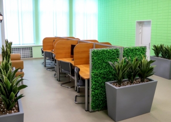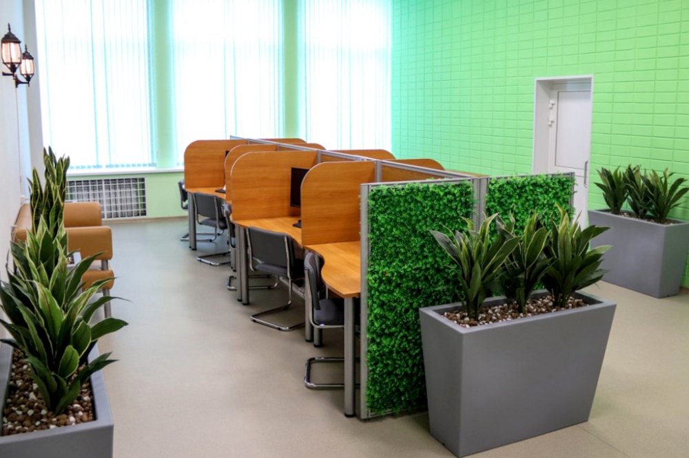 В интерьере появились композиции из искусственных растений и натурального мха. Экостиль – новая тенденция в озеленении общественных пространств. Растения сделали зал более «живым», гармоничным и привлекательным, создали иллюзию близости к природе, что особенно важно в климатических условиях Крайнего Севера.
