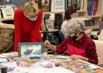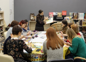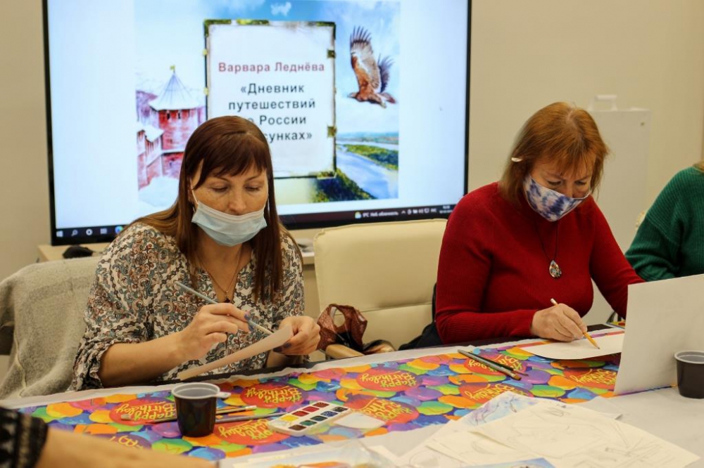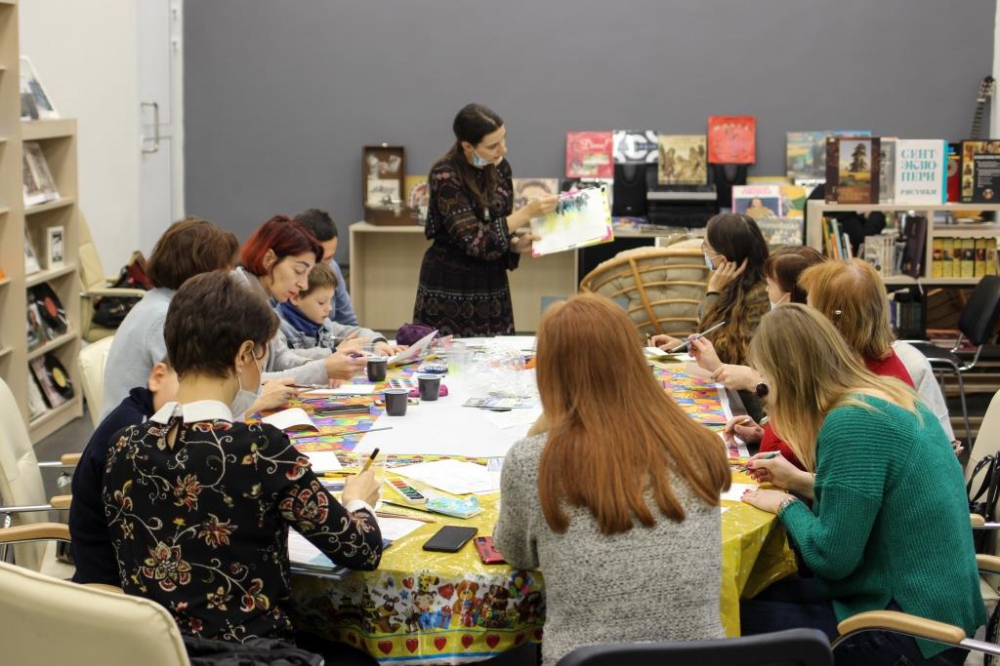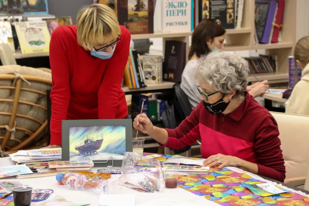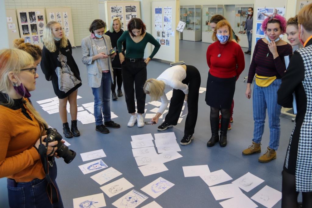 Состоялось открытие выставки лучших работ международного фестиваля книжной иллюстрации и визуальной литературы «Морс», художница и директор фестиваля Анна Чефранова провела мастер-класс «Печатаем автопортет».