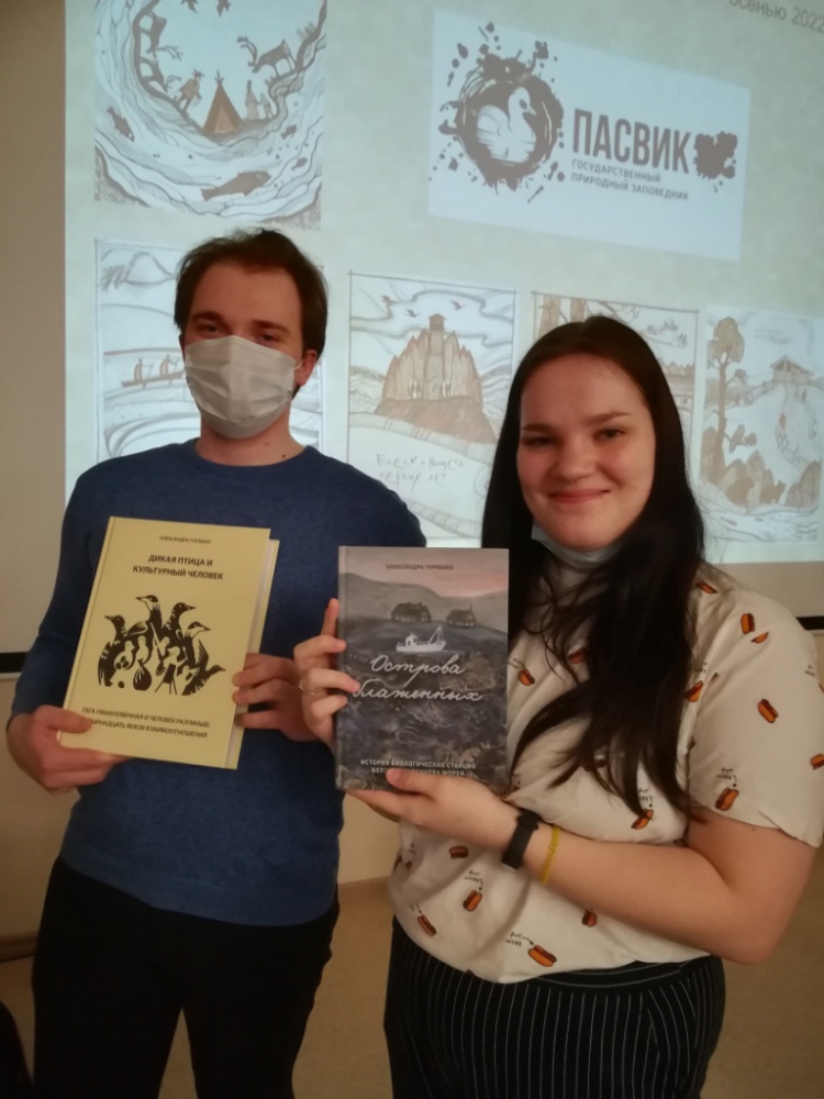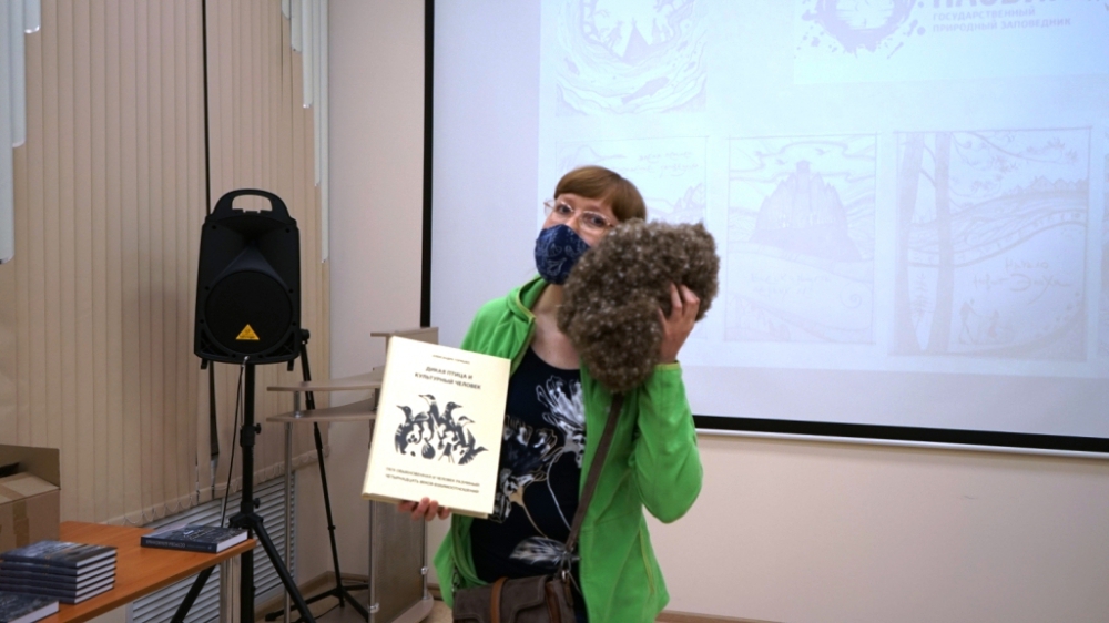 Александра Горяшко в увлекательном, заинтересованном диалоге познакомила аудиторию с работой сотрудников Кандалакшского заповедника, рассказала об истории становления и развития одного из старейших заповедников России, а также о деятельности четырнадцати биологических станций, расположенных на побережьях Белого и Баренцева морей.