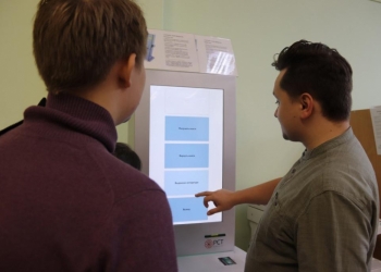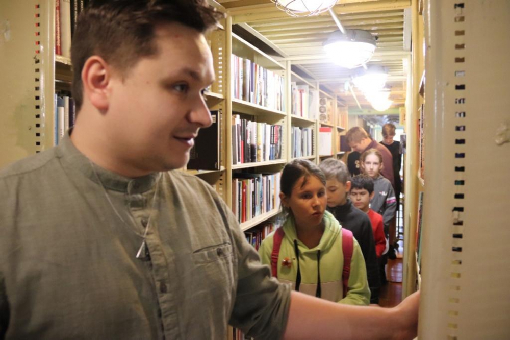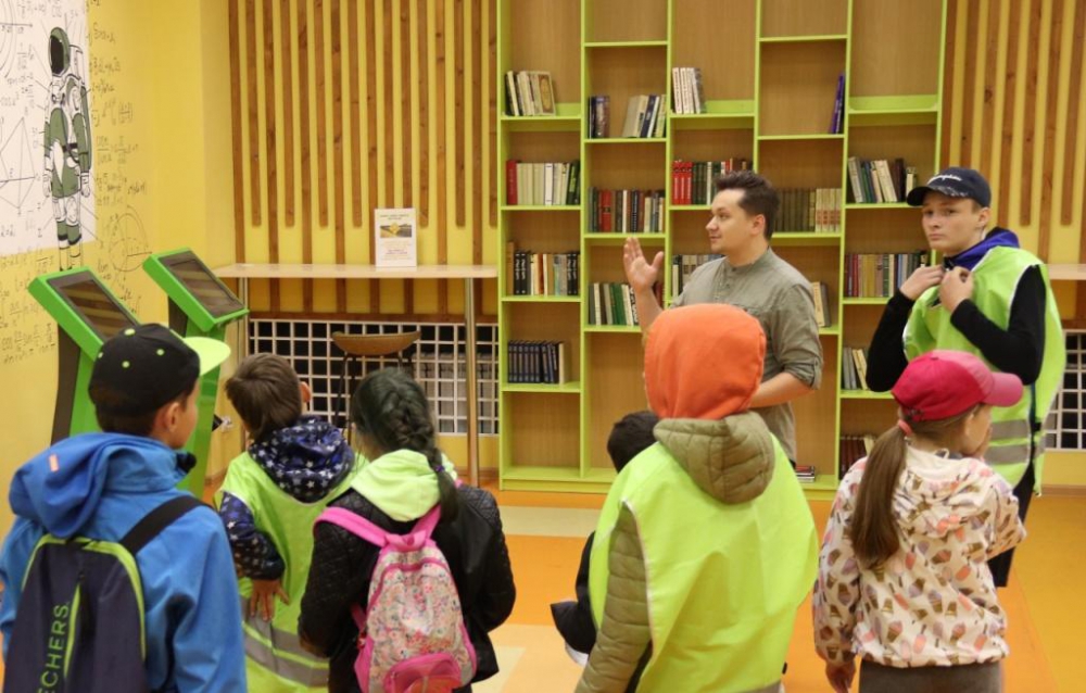 Они поднялись с цокольного до 4 этажа, узнали работу библиотеки изнутри, увидели выставки и арт-объекты, книгохранение, самый большой за полярным кругом маятник Фуко, музей компьютерной техники «Когда компьютеры были большими».