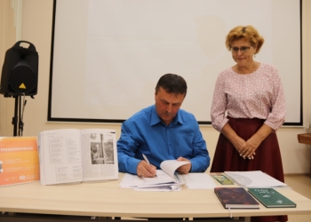В завершение встречи Олег Эдуардович подарил в фонд библиотеки сборники своих произведений «Живая и разная», «Семь берез» и «Листья на ветру» с посвящением библиотеке.
