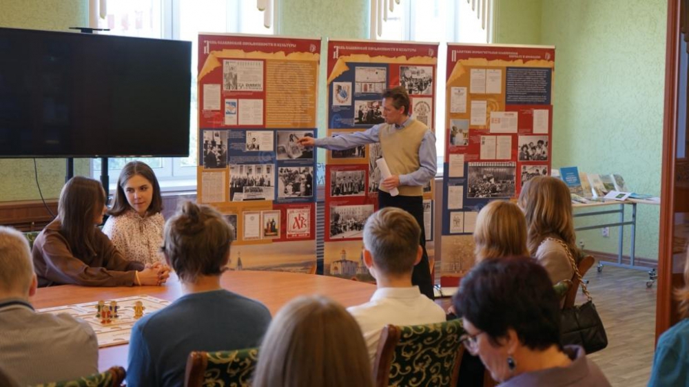 Приятным сюрпризом для гостей библиотеки стал рассказ главного архивиста отдела научного использования и публикации архивных документов Государственного архива Мурманской области Максима Ершова о выставке, посвященной истории праздника «День славянской письменности и культуры».