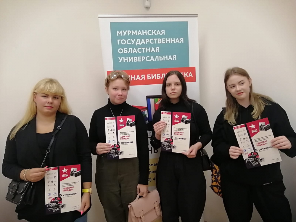 В библиотеке Диктант написали более 120 человек – вице-губернатор Мурманской области, курирующий внутреннюю политику региона, Владимир Евменьков, военнослужащие, курсанты Кадетской школы г. Мурманска, учащиеся гимназии №5, студенты Мурманского индустриального колледжа, Мурманского морского рыбопромышленного колледжа им. Месяцева, Мурманского арктического государственного университета, специалисты организаций города, читатели библиотеки.