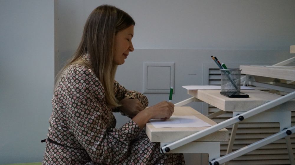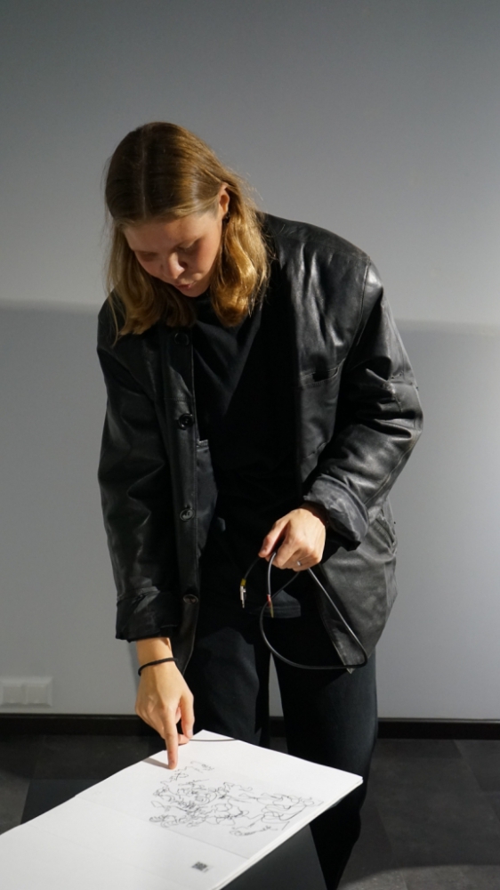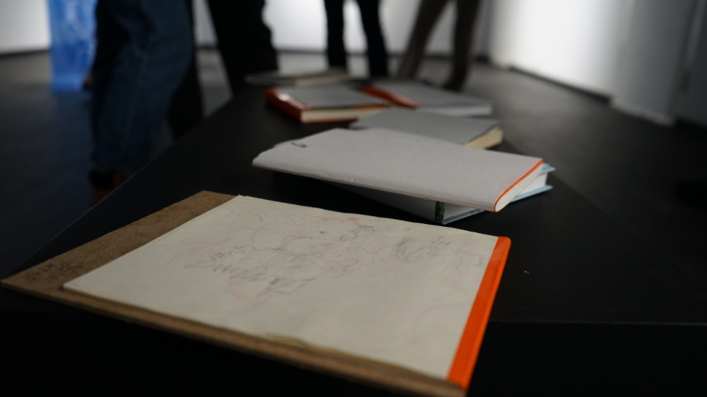 Помимо художественных работ на выставке представлены личные дневники Дарьи Орловой, которые, как и все остальные экспонаты, созданы с закрытыми глазами. Желающие могут попробовать их прочитать.