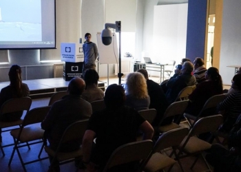 Мика Петров, фотограф и путешественник, охотник за северным сиянием, член Русского географического общества рассказал об экспедиции к историческим световым маякам Зимнего берега Белого моря. Благодаря увлекательной лекции «Маяки Заполярья» члены регионального отделения Российского географического общества, историки, краеведы, студенты и учащиеся совершили путешествие из Петербурга в Архангельск, посетили негостеприимный остров Мудьюг, Вепревский мыс, заброшенную деревню Инцы, старейшее поморское поселение Ручьи, услышали захватывающий рассказ о длинных лыжных переходах, ночевках в зимнем лесу, встречах с медведем и охоте за северным сиянием.