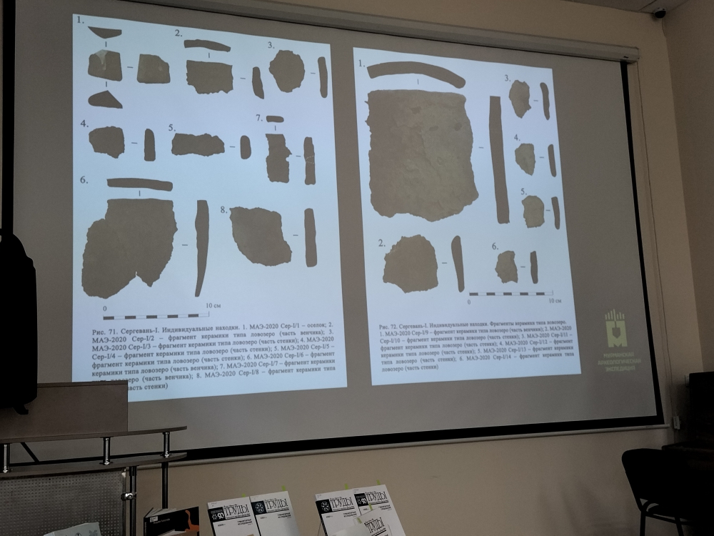 Вместе с лектором участники встречи совершили экскурс в историю археологических исследований Мурмана с двадцатых готов прошлого века до настоящего времени.