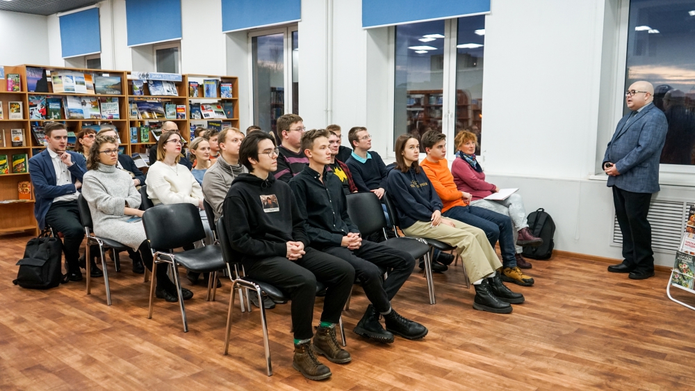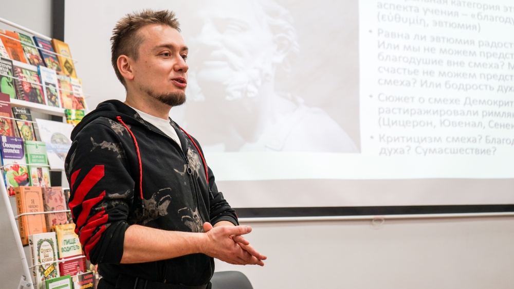 Доцент кафедры философии и социальных наук МАГУ Воронов Василий Михайлович прочитал лекцию, на которой гости библиотеки узнали о разных аспектах связи философии и юмора, философии и смеха. Обсудили смеющихся и смешных философов, восприятие философии через юмористический ключ и затронули тему осмысления философами смеха и юмора.
