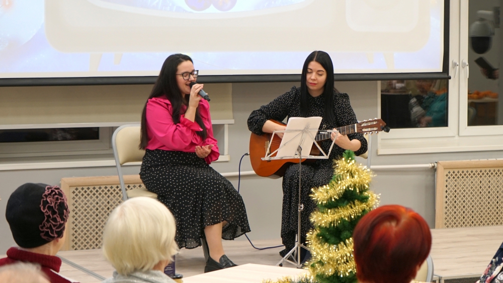 Ведущие вечера поздравили всех собравшихся с наступающим Новым годом. Для людей старшего поколения была подготовлена специальная развлекательная программа. Своим прекрасным выступлением порадовал молодой дуэт «Соль», в составе которого выпускницы Мурманского колледжа искусств Кристина Бабурина и Екатерина Шиляева. Они исполнили знаменитые новогодние песни «Хорошее настроение», «Песенку о белых медведях» и «Загадай желание». Гости вечера приняли участие в увлекательной электронной викторине «Угадай фильм по песне». За правильные ответы каждому участнику вручали специальный приз из волшебного мешка Деда Мороза.