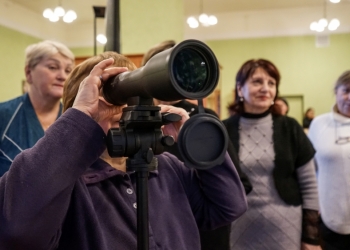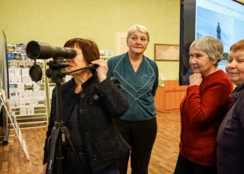 В конце мероприятия можно было посмотреть на город в подзорную трубу и поближе увидеть те объекты, о которых шла речь на экскурсии.