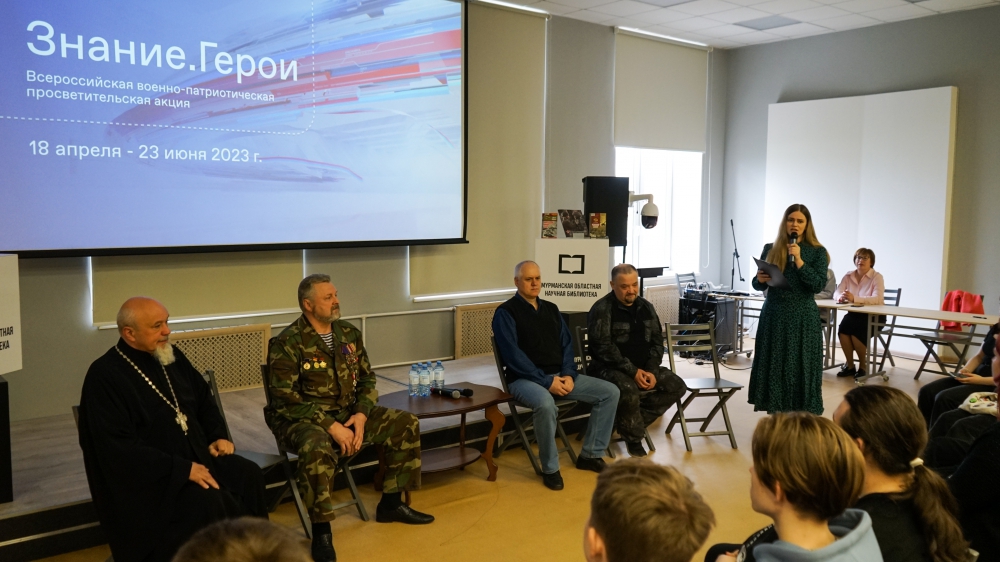Мурманская областная научная библиотека стала площадкой Всероссийской военно-патриотической просветительской акции «Знание. Герои». Акция проходит с 18 апреля по 23 июня 2023 года в 89 субъектах Российской Федерации и нацелена на патриотическое воспитание молодого поколения, повышение уровня знаний молодежи об истории Великой Отечественной войны, о подвигах героев, достижениях страны и родного края.