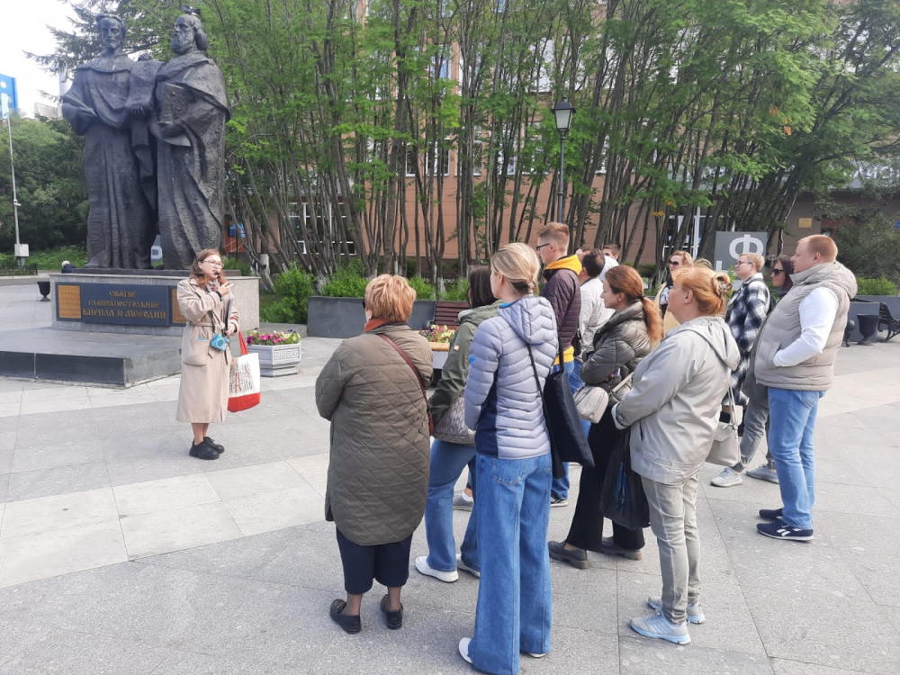 8 июля мурманчане и гости города приняли участие в авторской пешеходной экскурсии «Мурманск. Литературные истории». Cледуя рекомендациям литературного путеводителя доктора исторических наук и профессора Павла Викторовича Фёдорова, экскурсанты прошлись теми же маршрутами, по которым ходили известные писатели и персонажи их произведений.