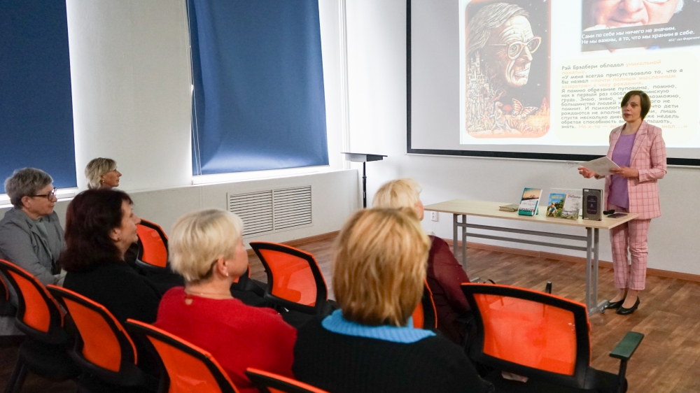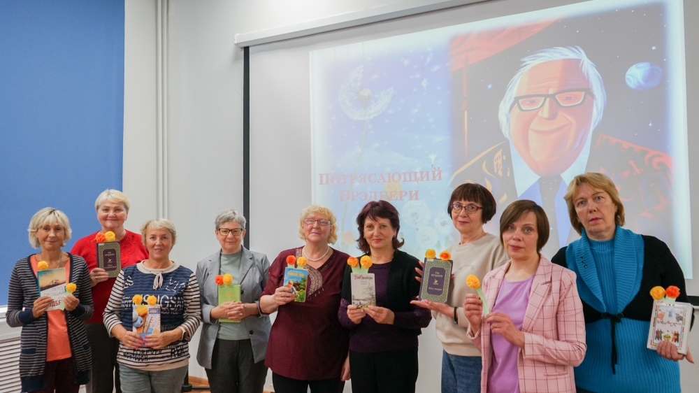 Участники клуба «Старшие» услышали отрывки из книги, увидели эпизоды из фильма «Вино из одуванчиков» и спектакля «Симфония огня» по книге «451 градус по Фаренгейту», где тоже речь идет о гадании на одуванчике. Презентация «Потрясающий Брэдбери» рассказала об удивительных фактах из жизни и творчества писателя. Фантастика Брэдбери – особая, философская и психологическая. Высшая ценность для автора – внутренний мир человека, фантазия, творчество, способность чувствовать и сопереживать.