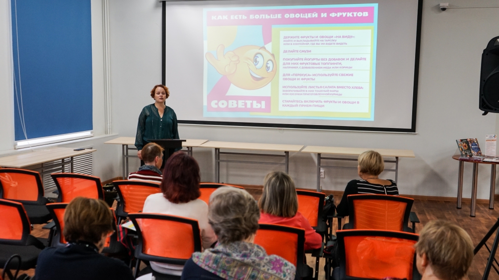 По питанию участники получили от специалиста такие рекомендации: питание должно быть разнообразным; необходимо отказаться от тяжело перевариваемых продуктов, например жилистого мяса, грибов, жареного; рацион нужно сбалансировать, чтобы каждый день организм получал необходимый набор витаминов и микроэлементов; не менее важно придерживаться правильного режима и питаться дробно, лучше не 3 раза в день, а 5-6 раз – небольшими порциями.