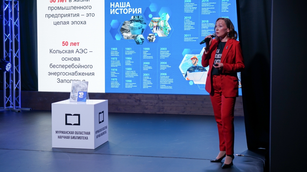 Специалист по связям с общественностью Кольской АЭС Ольга Александровна Патюкова познакомила присутствующих с новой книгой. Издание освещает историю атомной станции, уникальные события, ее традиции, рассказывает о заслуженных работниках, знакомит читателей с городом-спутником.